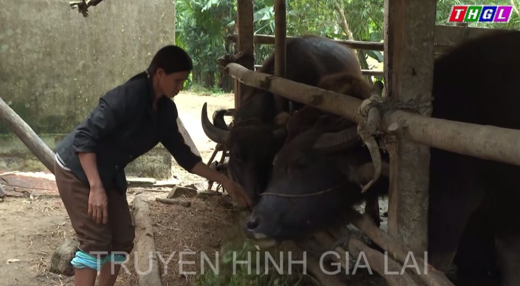 Trời đã bắt đầu chuyển sang rét, lạnh nên người dân không thả trâu ra đồng hoặc trên núi nữa mà nhốt trong chuồng. Chị Đinh Thị Nhi có 9 con trâu, trong đó có 2 con trâu nghé. Chị đang tính toán để bảo vệ đàn trâu.
