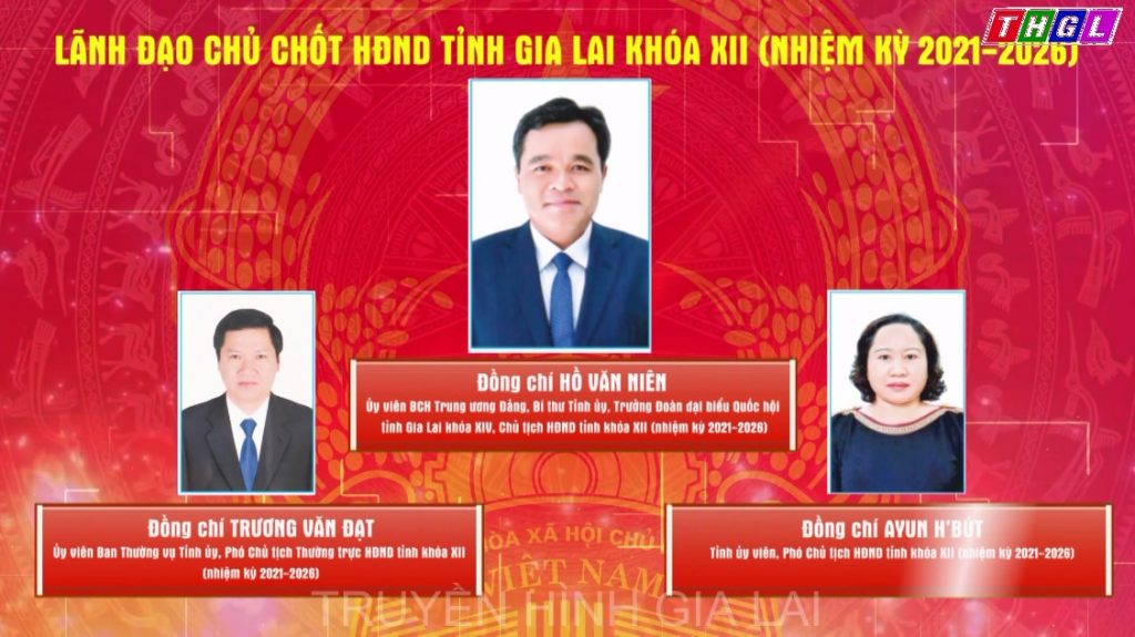 Tại Kỳ họp thứ Nhất, HĐND tỉnh Gia Lai, khóa XII (nhiệm kỳ 2021-2026), trên tinh thần dân chủ, công tâm và trách nhiệm cao trước cử tri và Nhân dân các dân tộc trong tỉnh, các vị đại biểu HĐND tỉnh đã lựa chọn và bầu các chức danh chủ chốt của bộ máy chính quyền tỉnh Gia Lai nhiệm kỳ 2021 – 2026. Sau đây Đài PT-TH Gia Lai xin trân trọng giới thiệu các chức danh chủ chốt của HĐND và UBND tỉnh Gia Lai khóa XII (nhiệm kỳ 2021-2026).