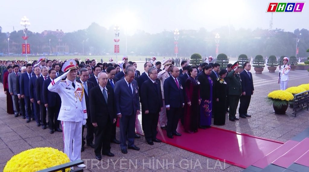 Tham gia Đoàn vào Lăng viếng Chủ tịch Hồ Chí Minh có Thủ tướng Chính phủ Nguyễn Xuân Phúc, Chủ tịch Quốc hội Nguyễn Thị Kim Ngân, cùng các đồng chí trong Bộ Chính trị, Ban Bí thư Trung ương Đảng và đại biểu dự Đại hội đại biểu toàn quốc lần thứ XIII của Đảng. Vòng hoa của Đoàn mang dòng chữ “Đời đời nhớ ơn Chủ tịch Hồ Chí Minh vĩ đại”. Trong giờ phút thiêng liêng, các đại biểu bày tỏ lòng biết ơn vô hạn đối với Chủ tịch Hồ Chí Minh kính yêu- Anh hùng giải phóng dân tộc, Danh nhân văn hóa thế giới; Người đã hiến dâng cuộc đời mình cho nền độc lập của Tổ quốc và tự do, hạnh phúc của Nhân dân. Người đã sáng lập, rèn luyện Đảng ta lãnh đạo đưa sự nghiệp giải phóng dân tộc, thống nhất đất nước và thực hiện công cuộc đổi mới giành được những thắng lợi có ý nghĩa lịch sử. Thành kính tưởng nhớ Chủ tịch Hồ Chí Minh vĩ đại, các đại biểu nguyện một lòng đi theo con đường mà Bác và Đảng ta đã lựa chọn; tiếp tục phát huy chủ nghĩa anh hùng cách mạng và sức mạnh đoàn kết toàn dân tộc; quyết tâm xây dựng Đảng trong sạch, vững mạnh; đẩy mạnh toàn diện, đồng bộ công cuộc đổi mới, bảo vệ vững chắc Tổ quốc; phấn đấu sớm đưa Việt Nam cơ bản trở thành nước công nghiệp theo hướng hiện đại.