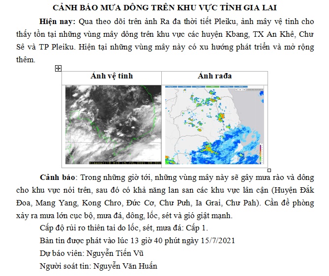 Cảnh báo lốc, sét, mưa đá trên khu vực tỉnh Gia Lai 15-7-2021