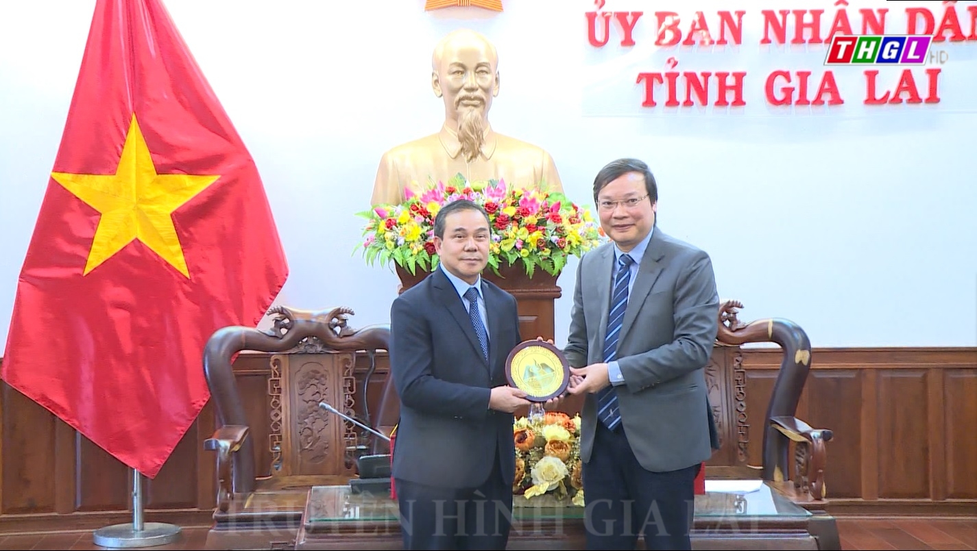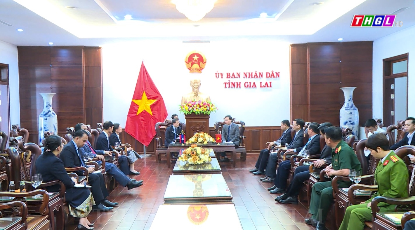 Chủ tịch UBND tỉnh Gia Lai Trương Hải Long tiếp Đại sứ đặc mệnh toàn quyền nước CHDCND Lào tại Việt Nam Sẻng Phết Hùng Bun Nhuông
