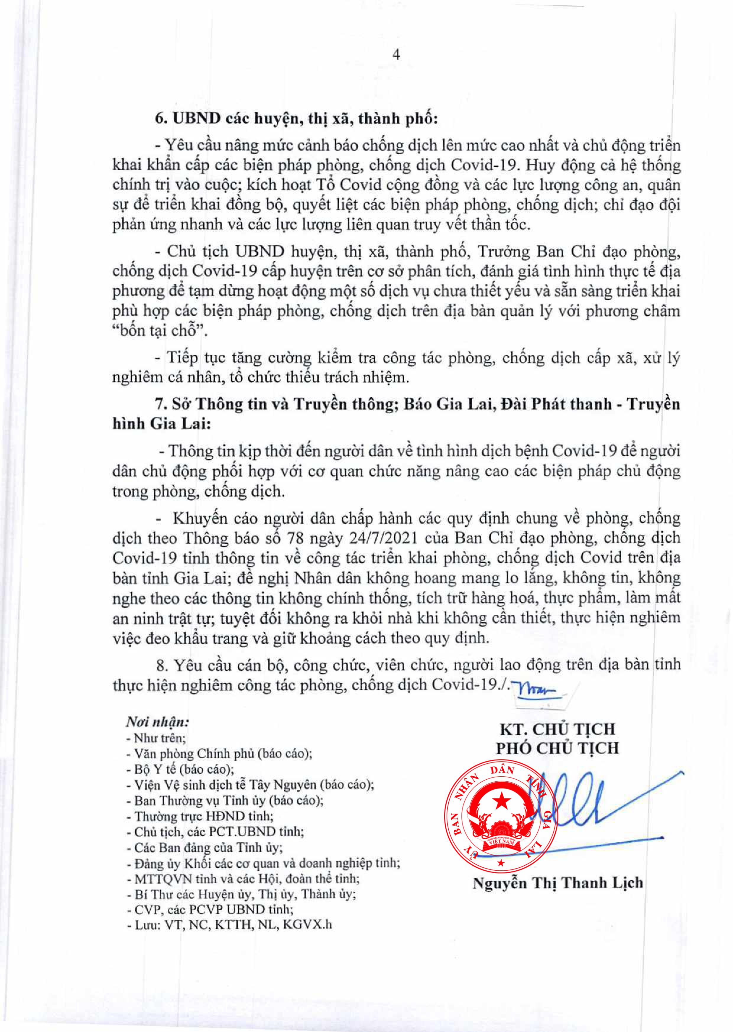 Về việc thực hiện một số biện pháp cấp bách để phòng, chống dịch Covid19 do liên quan đến các trường hợp dương tính lần 1 với SARS-CoV-2 tại thành phố Pleiku.