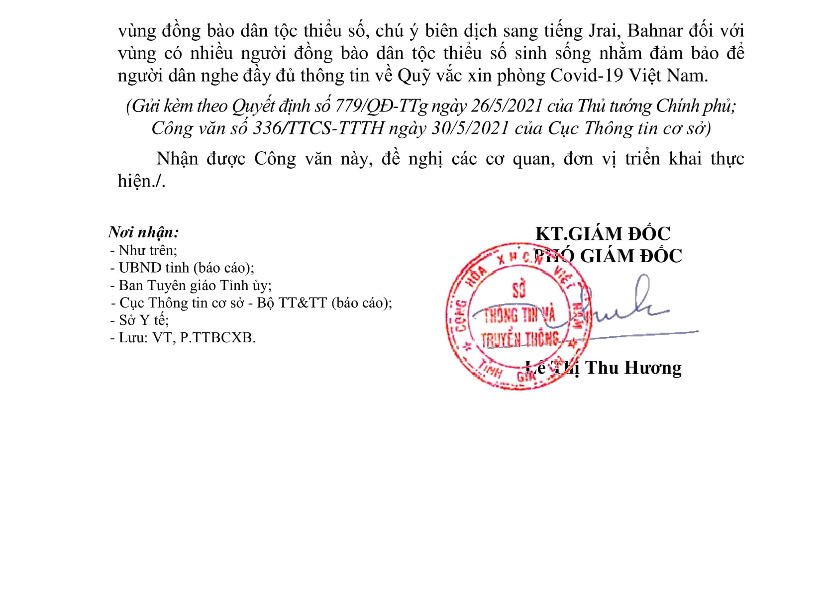 Công văn số 841 của Sở Thông tin và Truyền thông về việc tuyên truyền Quỹ vắc xin phòng Covid-19 Việt Nam