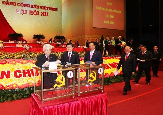 ![]() Các đồng chí lãnh đạo Đảng, Nhà nước và đại biểu bỏ phiếu bầu Ban Chấp hành Trung ương Đảng khóa XII. Ảnh: TTXVN |