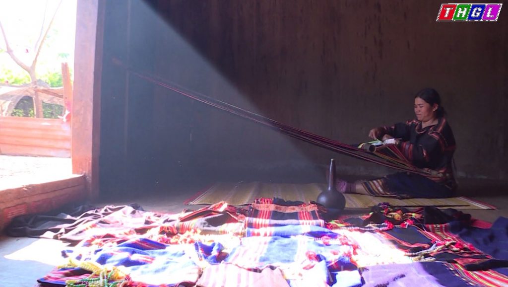 Bà Kpuih Blop – Làng O Grưng, xã Ia Ko, huyện Chư Sê, Gia Lai chia sẻ: “Mình từ nhỏ đã biết dệt thổ cẩm rồi. Dệt thổ cẩm không khó nhưng phải kiên trì và khéo léo. Trước đây, thường dùng sợi bông để dệt. Giờ thì sợi chỉ dễ tìm hơn. Mình thường dệt về thiên nhiên, cảnh vật bên ngoài với các màu đỏ, vàng, xanh”.