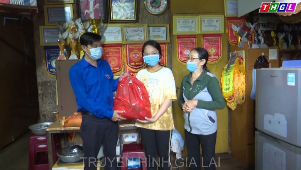 Từ nguồn quyên góp, hỗ trợ, Thành Đoàn Pleiku đã trao tặng 110 suất quà (mỗi suất gồm: gạo, nước mắm, dầu ăn, mì tôm….) cho các thiếu nhi khó khăn tại 22 xã, phường. Đến thăm từng gia đình, đại diện của Thành Đoàn Pleiku đã thăm hỏi sức khỏe, đời sống của các em trong tình hình dịch bệnh Covid-19.