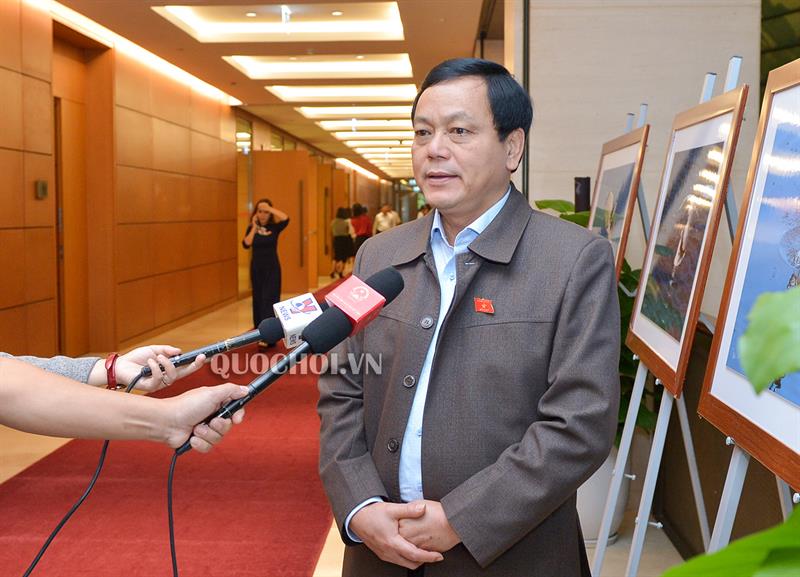 Các đại biểu Quốc hội trả lời phỏng vấn của phóng viên báo chí.