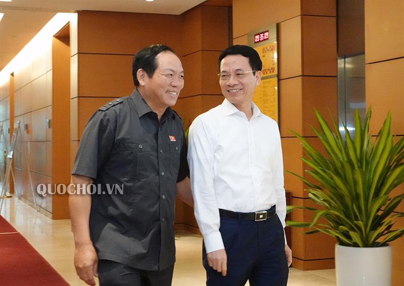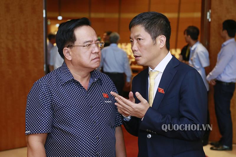 Các đại biểu trao đổi tại hành lang Quốc hội.
