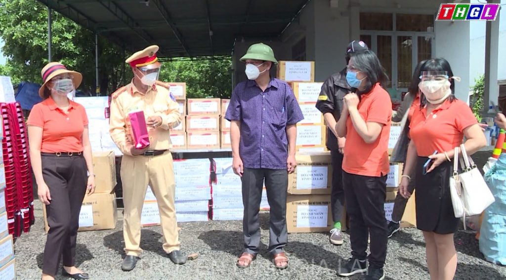 Tại đây, Hội Nữ Doanh nhân tỉnh Gia Lai đã thăm hỏi, chia sẻ những khó khăn mà các lực lượng đang làm nhiệm vụ kiểm soát phòng chống dịch Covid-19, tiếp nhận công dân từ các tỉnh phía Nam trở về trong suốt thời gian qua. Bên cạnh đó, Hội Nữ Doanh nhân tỉnh Gia Lai động viên các thành viên trong lực lượng tuyến đầu chống dịch tiếp tục vượt qua khó khăn, kiên trì hoàn thành tốt nhiệm vụ được tỉnh giao.  Dịp này, Hội Nữ Doanh nhân tỉnh Gia Lai đã trao tặng, hỗ trợ cho lực lượng đang thực hiện nhiệm vụ phòng chống dịch Covid-19 tại Chốt Cầu 110 các nhu yếu phẩm thiết yếu như nước uống, sữa hộp, xúc xích, mì tôm, nước rửa tay kháng khuẩn…, 100 ghế nhựa và 500 bộ quần áo bảo hộ y tế, tổng trị giá 65 triệu đồng.