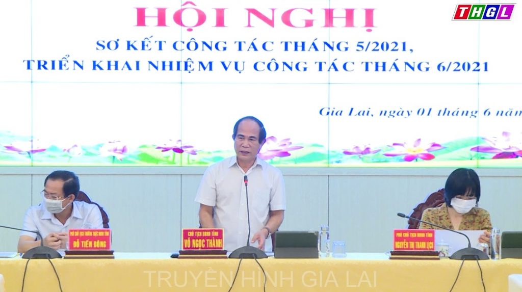 Chủ tịch UBND tỉnh Võ Ngọc Thành nhấn mạnh: 5 tháng đầu năm 2021, mặc dù bị ảnh hưởng nặng nề của dịch Covid 19 nhưng được sự quan tâm của Trung ương và sự lãnh đạo sát sao của Tỉnh uỷ, chỉ đạo quyết liệt của UBND tỉnh và cấp uỷ, chính quyền các cấp, sự phối hợp chặt chẽ của Mặt trận và các đoàn thể, tinh thần trách nhiệm cao của các lực lượng, sự đồng lòng ủng hộ của Nhân dân, tỉnh Gia Lai đã thực hiện tốt việc phòng chống dịch với các giải pháp tích cực, toàn diện theo tinh thần “chống dịch như chống giặc”; bảo đảm giữ vững, không để đứt gãy các hoạt động sản xuất kinh doanh; thực hiện “mục tiêu kép” vừa phòng, chống dịch bệnh, bảo vệ sức khoẻ nhân dân, vừa phục hồi và phát triển kinh tế – xã hội. Thành quả trong công tác phòng, chống dịch đã góp phần giúp tỉnh thực hiện đạt và vượt nhiều chỉ tiêu quan trọng đề ra trong 5 tháng đầu năm 2021; nhất là Kim ngạch xuất khẩu đạt 270,2 triệu USD, thu ngân sách trên địa bàn ước đạt hơn 2.739 tỷ đồng và tỉnh đã chấp thuận chủ trương đầu tư 21 dự án, với tổng vốn đăng ký 15.871 tỷ đồng…Đặc biệt hơn, vào ngày 23.5 vừa qua, cùng với cả nước, tỉnh cũng tổ chức thành công cuộc bầu cử đại biểu Quốc hội khoá XV và đại biểu HĐND các cấp nhiệm kỳ 2021-2026 đảm bảo an toàn, đúng quy định với tỷ lệ cử tri tham gia bỏ phiếu đạt 99,86%. Để thực hiện thắng lợi từng chỉ tiêu, nhiệm vụ đề ra thời gian tới, Chủ tịch UBND tỉnh Võ Ngọc Thành đề nghị cả hệ thống chính trị trên địa bàn tỉnh không được chủ quan, lơ là; tập trung xây dựng các kịch bản chi tiết trong phòng, chống dịch Covid-19 và phát huy cao nhất vai trò, trách nhiệm của người đứng đầu các cấp trong thực hiện từng nhiệm vụ được giao.