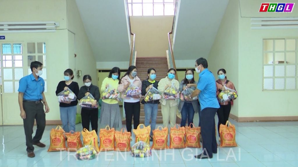 Liên đoàn Lao động thành phố Pleiku cũng vừa tổ chức thăm và tặng 45 suất quà gồm nhu yếu phẩm thiết yếu cho đoàn viên, người lao động bị ảnh hưởng bởi dịch bệnh Covid -19 với tổng trị giá 13,5 triệu đồng.