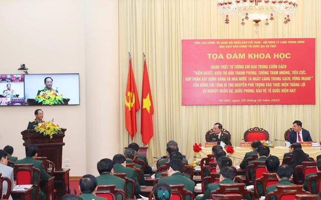 Sáng 20/2, Tổng cục Chính trị Quân đội nhân dân Việt Nam phối hợp với Hội đồng Lý luận Trung ương, Nhà xuất bản Chính trị quốc gia Sự thật tổ chức Tọa đàm khoa học “Quán triệt tư tưởng chỉ đạo trong Cuốn sách “Kiên quyết, kiên trì đấu tranh phòng, chống tham nhũng, tiêu cực, góp phần xây dựng Đảng và Nhà nước ta ngày càng trong sạch, vững mạnh” của Tổng Bí thư Nguyễn Phú Trọng vào thực hiện thắng lợi sự nghiệp quân sự, quốc phòng, bảo vệ Tổ quốc hiện nay”.