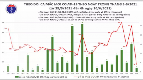 Như vậy đến nay Việt Nam có tổng cộng 12.978 ca mắc Covid-19; trong đó 11.289 ca ghi nhận trong nước và 1.689 ca nhập cảnh. Số lượng ca mắc mới tính từ ngày 27/4 đến nay là 9.719 ca, trong đó có 2.280 bệnh nhân đã được công bố khỏi bệnh. Tổng số người tiếp xúc gần và nhập cảnh từ vùng dịch đang được theo dõi sức khỏe (cách ly) là 172.990 trường hợp./.