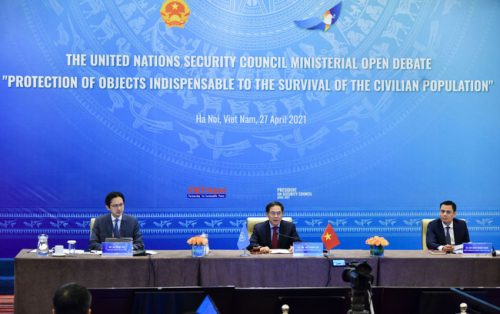 Thứ ba là những đề xuất, sáng kiến mà Việt Nam quan tâm, thúc đẩy trong tháng Chủ tịch HĐBA. Với cách tiếp cận là cùng chung tay ngăn ngừa, giải quyết xung đột, chúng ta đã đưa ra 3 phiên thảo luận cấp cao về ngăn ngừa xung đột, giải quyết xung đột và xử lý hậu quả xung đột. Chủ tịch nước Nguyễn Xuân Phúc ngày 19/4 đã chủ trì Phiên Thảo luận mở cấp cao về chủ đề “Tăng cường hợp tác giữa LHQ và các tổ chức khu vực trong thúc đẩy lòng tin và đối thoại trong ngăn ngừa và giải quyết xung đột”; Bộ trưởng Ngoại giao Bùi Thanh Sơn đã chủ trì 02 Phiên thảo luận mở cấp Bộ trưởng ngày 08/4 với chủ đề “Khắc phục hậu quả bom mìn và duy trì hòa bình bền vững: Tăng cường gắn kết để hành động hiệu quả hơn” và ngày 27/4 với chủ đề “Bảo vệ cơ sở thiết yếu đối với sự sống của người dân trong xung đột vũ trang”. Các phiên họp đều diễn ra thành công, nhận được sự quan tâm của các nước với sự tham dự ở cấp rất cao, đồng thời thông qua được những văn kiện quan trọng để thúc đẩy những nội dung mà chúng ta quan tâm.