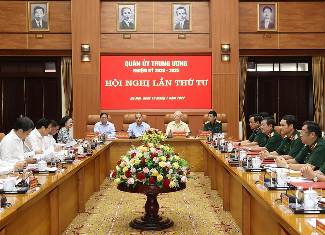 Sáng 13/7, tại Hà Nội, Tổng Bí thư Nguyễn Phú Trọng, Bí thư Quân ủy Trung ương chủ trì Hội nghị Quân ủy Trung ương lần thứ tư nhằm đánh giá kết quả lãnh đạo thực hiện nhiệm vụ quân sự, quốc phòng 6 tháng đầu năm và triển khai nhiệm vụ trọng tâm 6 tháng cuối năm 2022.