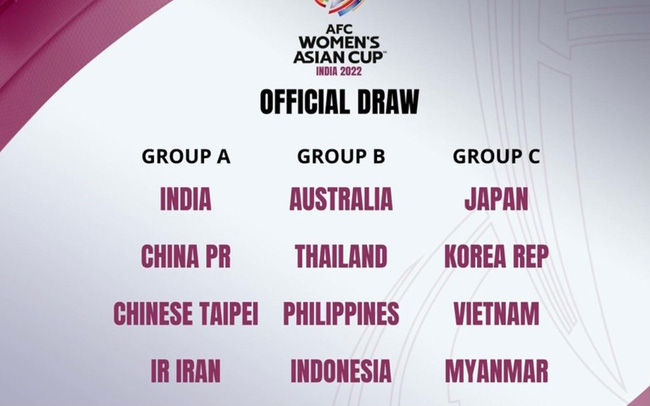 ĐT nữ Việt Nam đã rơi vào bảng đấu khó tại VCK Asian Cup nữ 2022 khi chung bảng với Nhật Bản, Hàn Quốc và Myanmar.