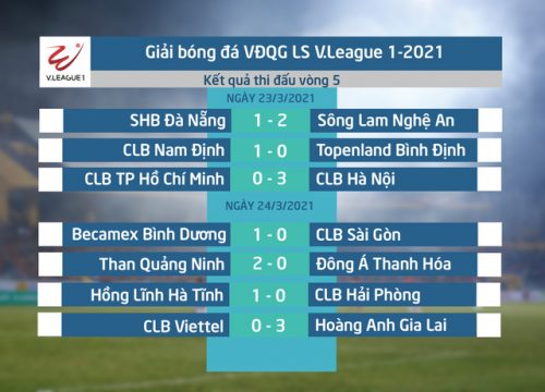 Kết quả, BXH vòng 5 giải VĐQG LS V.League 1-2021: Hoàng Anh Gia Lai vươn lên dẫn đầu