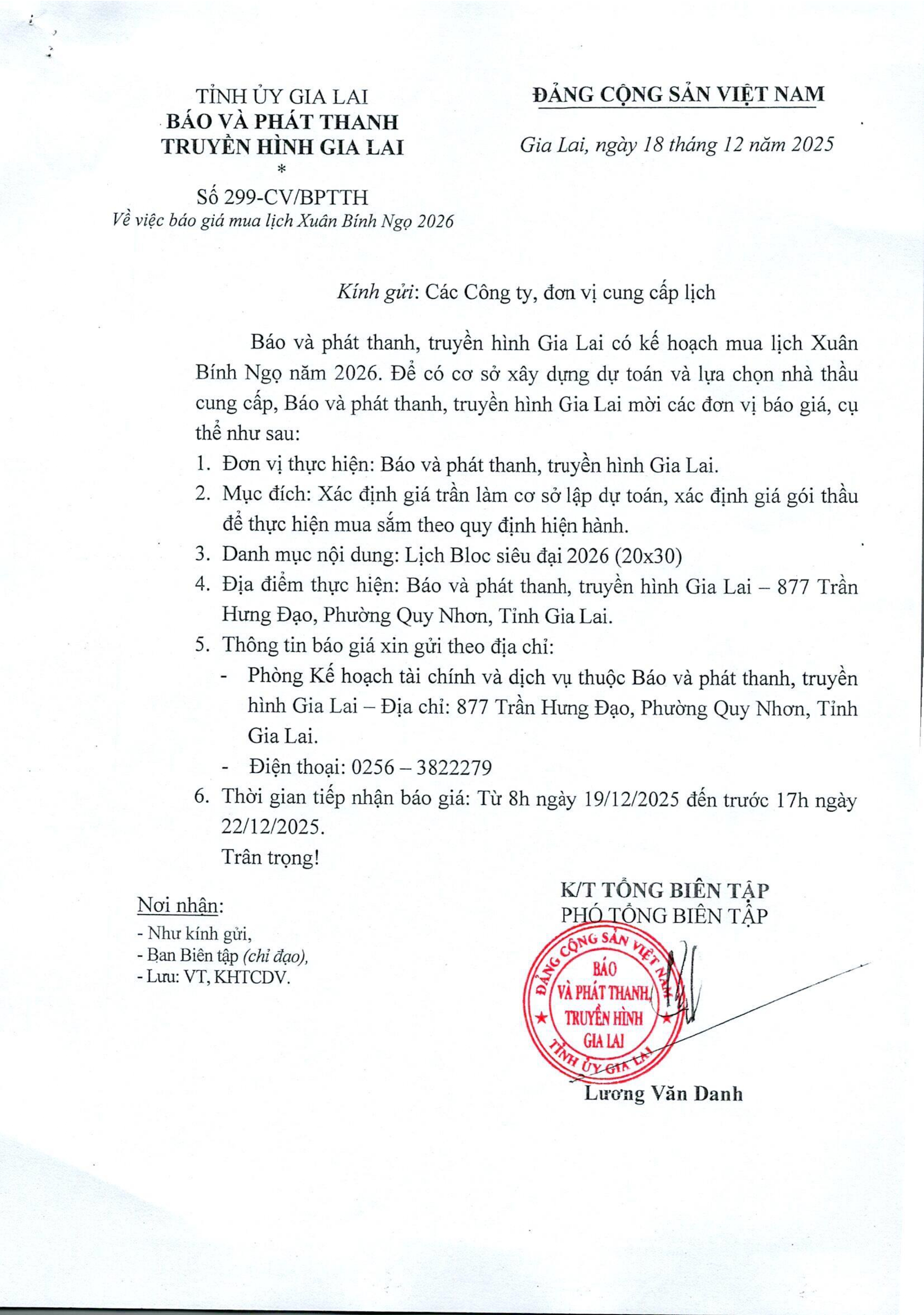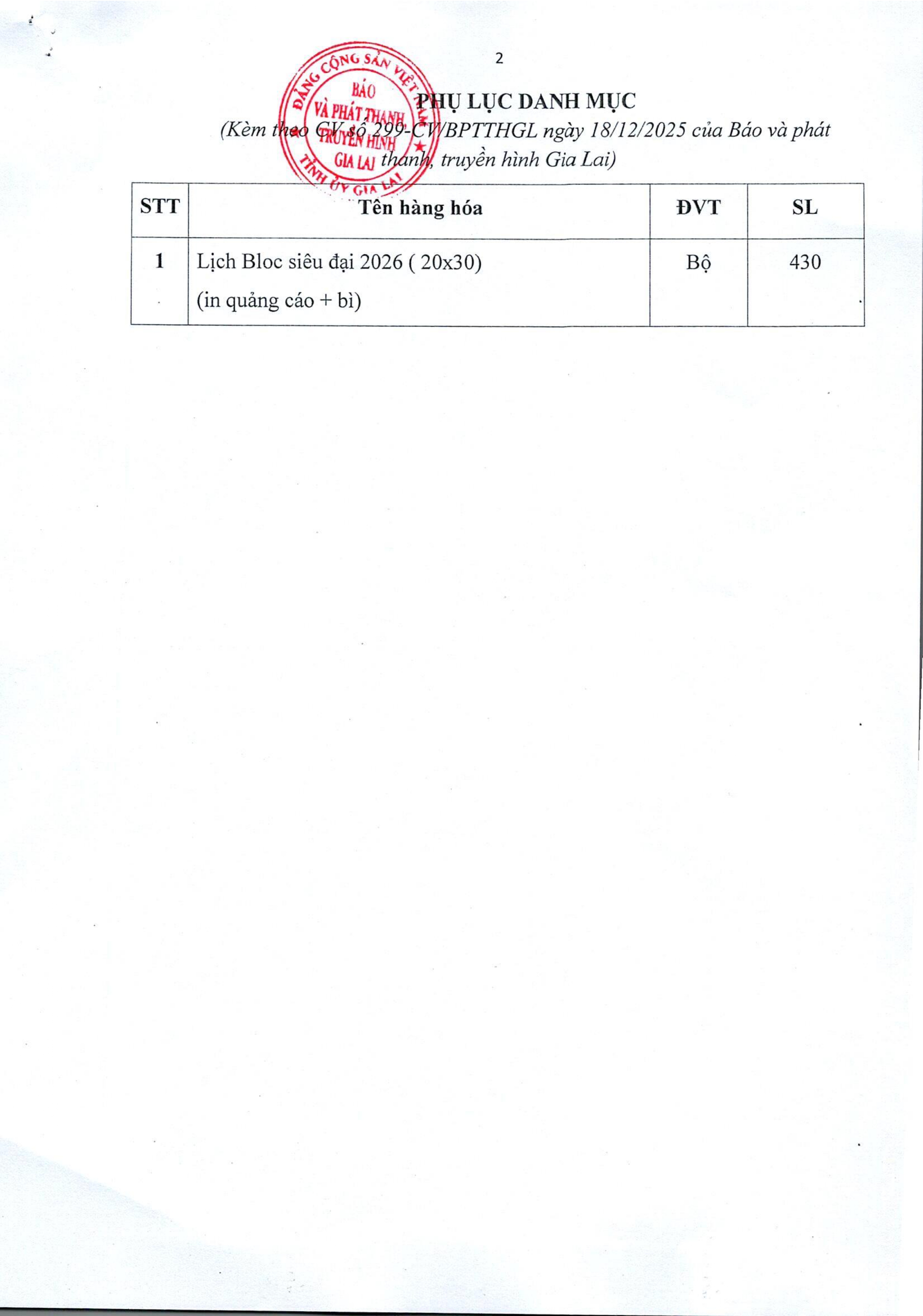 Về việc báo giá mua lịch Xuân Bính Ngọ 2026