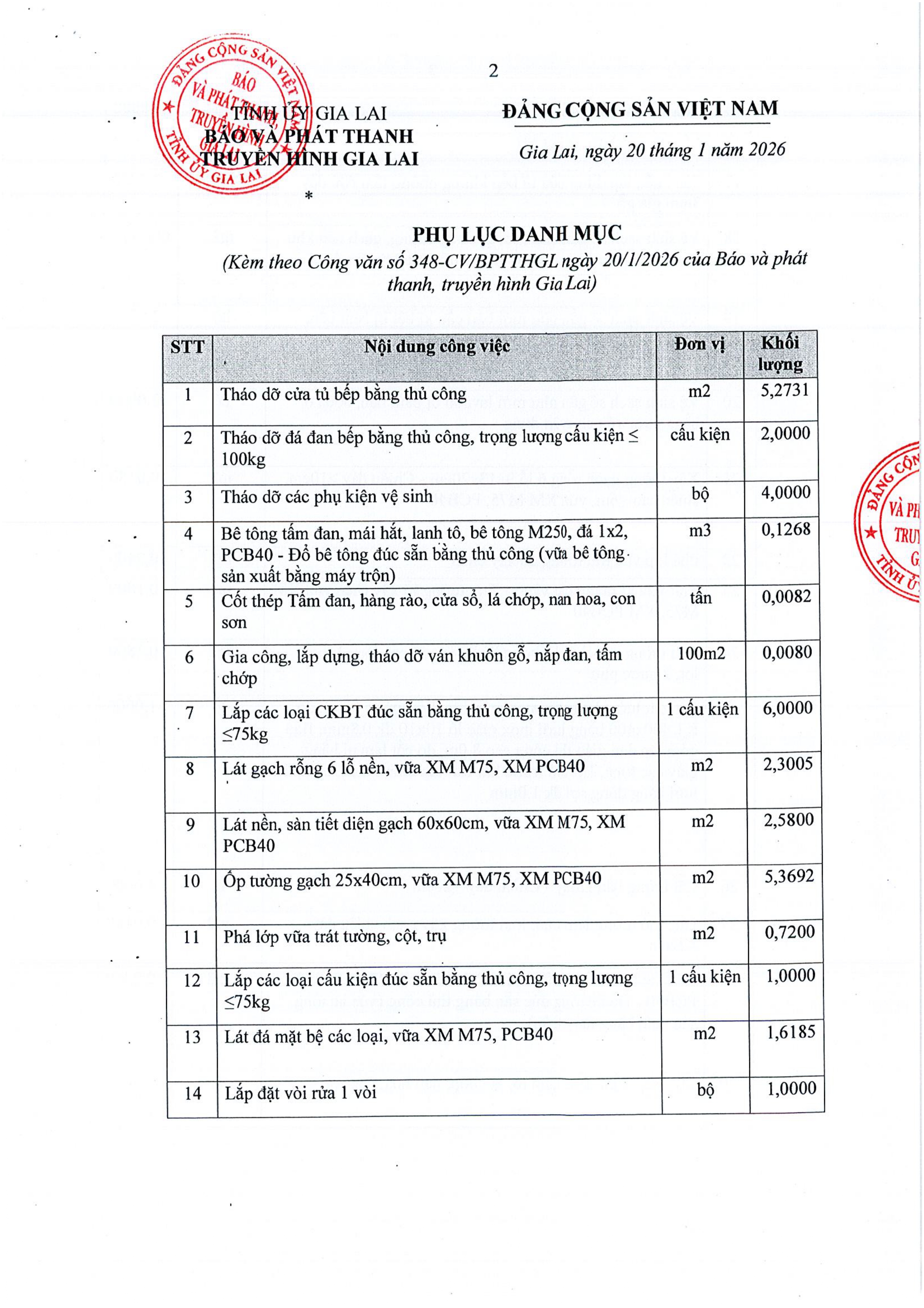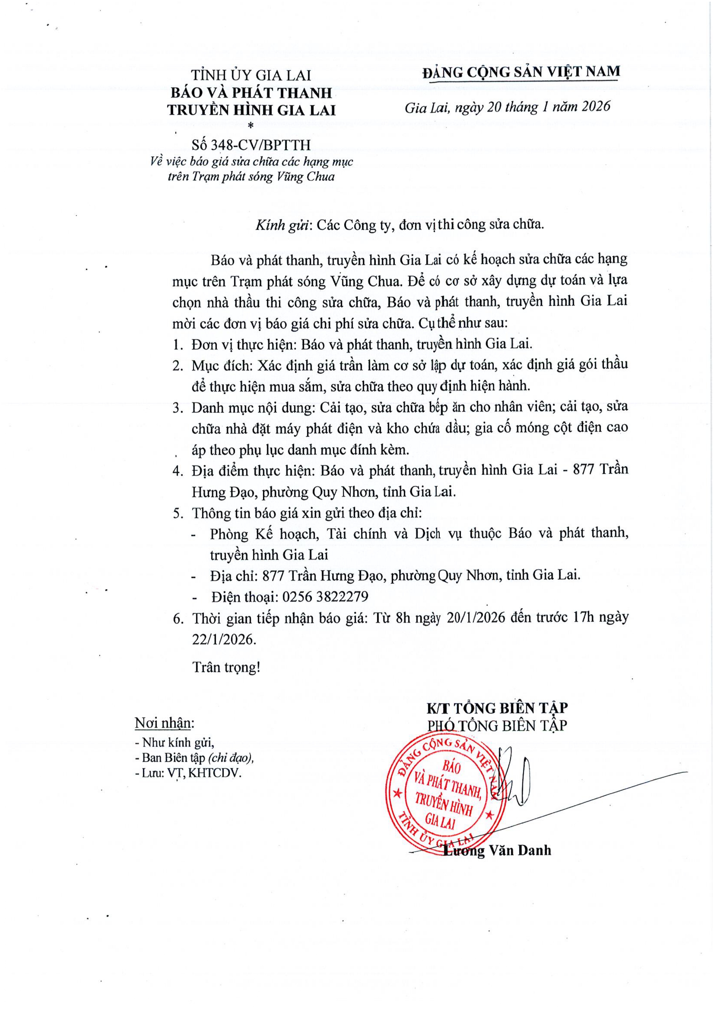 CÔNG VĂN số 348 – Về việc báo giá sửa chữa các hạng mục trên Trạm phát sóng Vũng Chua