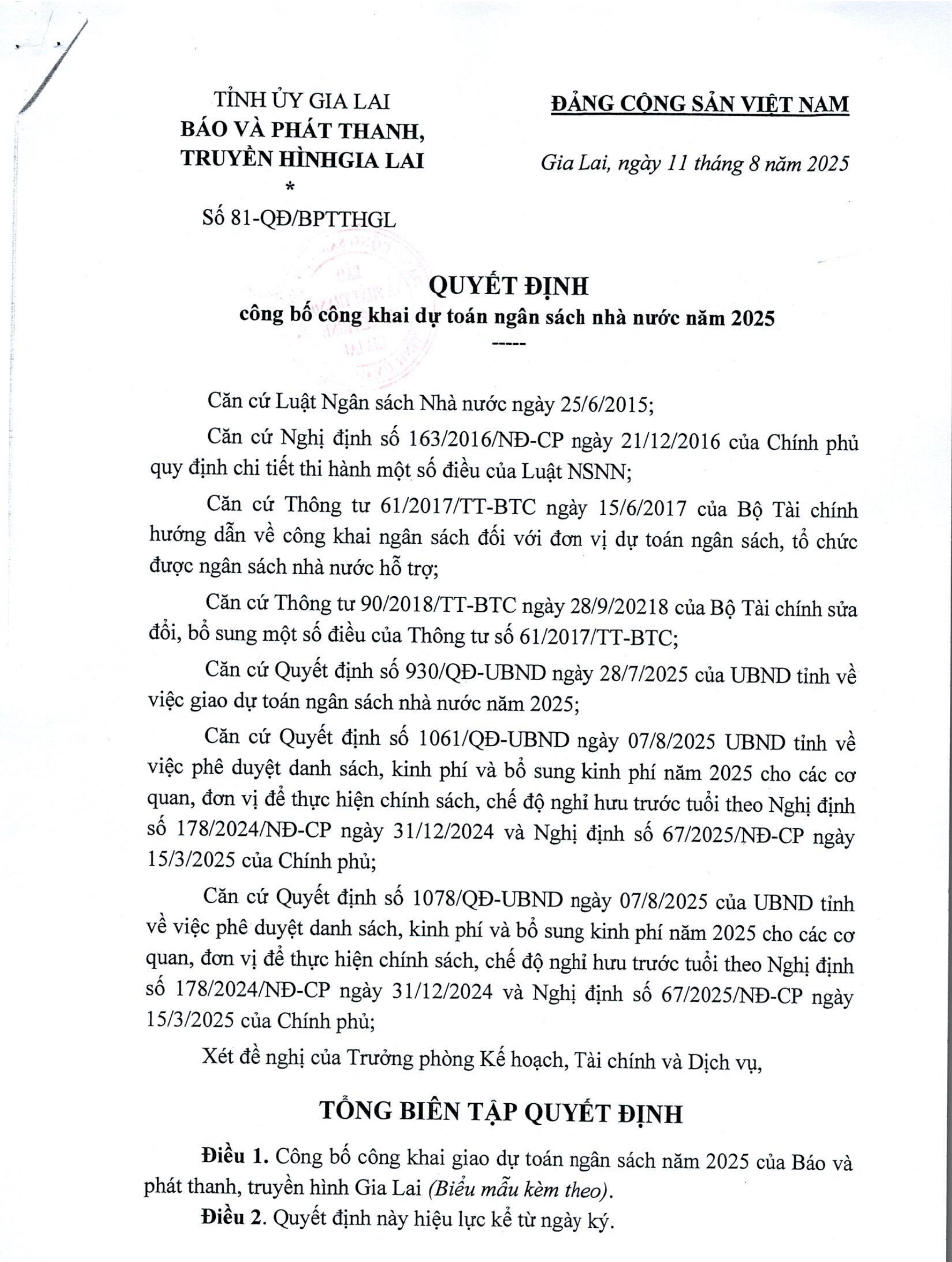 QUYẾT ĐỊNH CÔNG BỐ CÔNG KHAI DỰ TOÁN NGÂN SÁCH NHÀ NƯỚC NĂM 2025