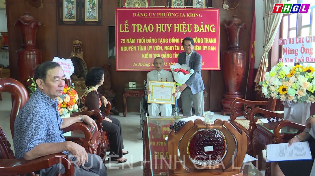 Theo đó, Phó Bí thư Thường trực Thành ủy Pleiku đã trao tặng Huy hiệu 75 tuổi Đảng cho 2 đảng viên, gồm: Đồng chí Phạm Đức Tấn- Nguyên Bí thư Đảng ủy Công an, nguyên Phó Giám đốc Công an tỉnh Gia Lai- Kon Tum; đồng chí Vi Hồng Thanh – Nguyên Tỉnh ủy viên, nguyên Chủ nghiệm Ủy ban Kiểm tra Tỉnh uỷ Gia Lai; đồng thời trân trọng những đóng góp của các đồng chí và bày tỏ mong muốn các đồng chí đảng viên tiếp tục phát huy vai trò tiền phong, gương mẫu, chung sức, đồng lòng cùng với Đảng bộ, chính quyền địa phương nơi sinh hoạt và cư trú, góp phần hoàn thành tốt nhiệm vụ chính trị của địa phương, để các thế hệ con, cháu noi gương góp phần xây dựng TP. Pleiku ngày càng phát triển.
