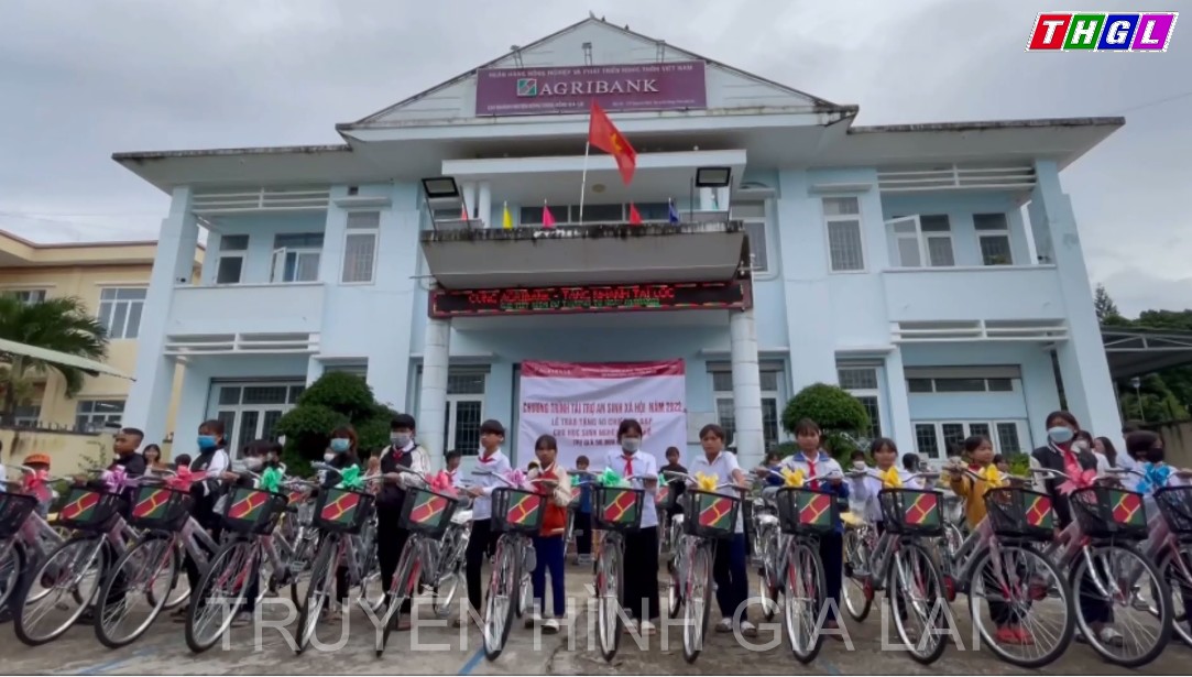 Agribank Chi nhánh huyện Kông Chro Đông Gia Lai phối hợp với Phòng GD&ĐT huyện Kông Chro vừa tổ chức trao tặng 40 xe đạp cho 40 em học sinh có hoàn cảnh khó khăn, học sinh nghèo vượt khó trên địa bàn huyện Kông Chro với tổng kinh phí 50 triệu đồng.