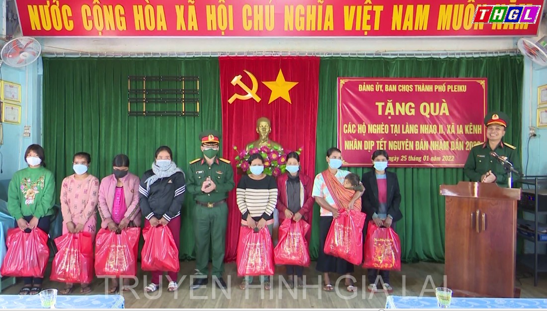 Tại đây, đại diện Ban chỉ huy Quân sự thành phố Pleiku đã gửi lời chúc mừng năm mới đến toàn thể bà con nhân dân trong làng đón Tết đầm ấm, an toàn và tiết kiệm. Đồng thời đơn vị cũng đã trao 23 suất quà cho các hộ nghèo, hộ cận nghèo, hộ khó khăn trong làng, mỗi suất 200 ngàn đồng gồm bánh, kẹo và các nhu yếu phẩm, trao 2 triệu đồng cho các cán bộ làng tổ chức tết cho bà con và 80 bộ quần áo. Những phần quà này được trích từ nguồn kinh phí do Ban CHQS thành phố vận động cán bộ, nhân viên của đơn vị đóng góp thể hiện trách nhiệm, tình cảm của cán bộ chiến sĩ Ban chỉ huy quân sự thành phố đối với đơn vị kết nghĩa nhân dịp đón Tết cổ truyền dân tộc, qua đó tăng cường tình đoàn kết, gắn bó, ấm tình “Quân – Dân”, tô thắm thêm hình ảnh cao đẹp “Bộ đội Cụ Hồ” trong thời kỳ mới.