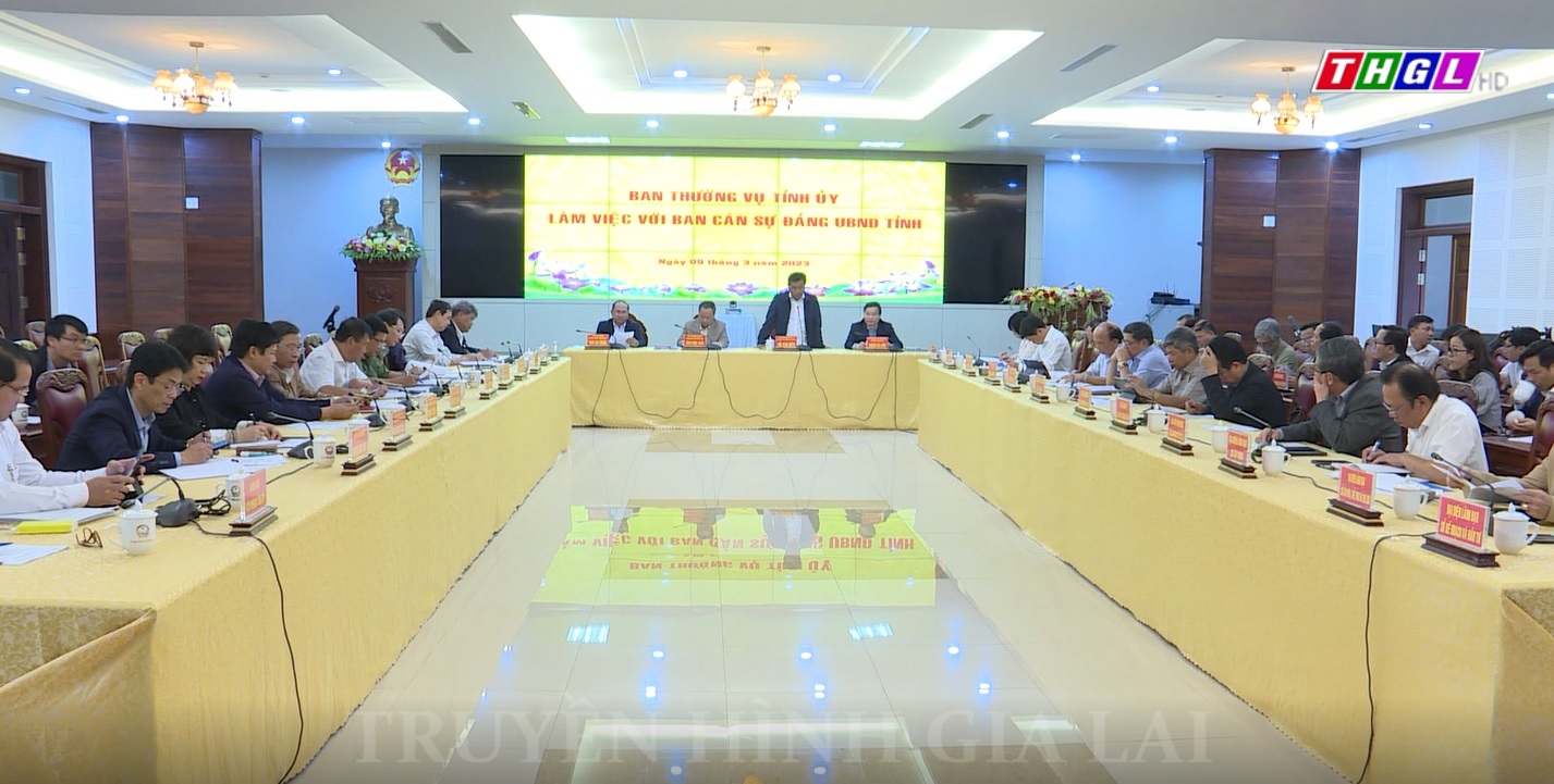 Sáng ngày 09/03, tại trụ sở UBND tỉnh Gia Lai, đồng chí Hồ Văn Niên – Ủy viên Ban Chấp hành Trung ương Đảng, Bí thư Tỉnh ủy, Chủ tịch HĐND tỉnh đã chủ trì buổi làm việc của Ban Thường vụ Tỉnh ủy với Ban cán sự đảng UBND tỉnh. Đồng chủ trì buổi làm việc có các đồng chí: Châu Ngọc Tuấn – Phó Bí thư Thường trực Tỉnh ủy, Trưởng Đoàn đại biểu Quốc hội tỉnh; Trương Hải Long- Phó Bí thư Tỉnh ủy, Chủ tịch UBND tỉnh; Rah Lan Chung – Phó Bí thư Tỉnh ủy, Trưởng Ban Nội chính Tỉnh ủy. Tham gia buổi làm việc có các đồng chí trong Ban Thường vụ Tỉnh ủy, tập thể Ban cán sự đảng UBND tỉnh, lãnh đạo Văn phòng Tỉnh ủy và lãnh đạo các sở, ngành của tỉnh.