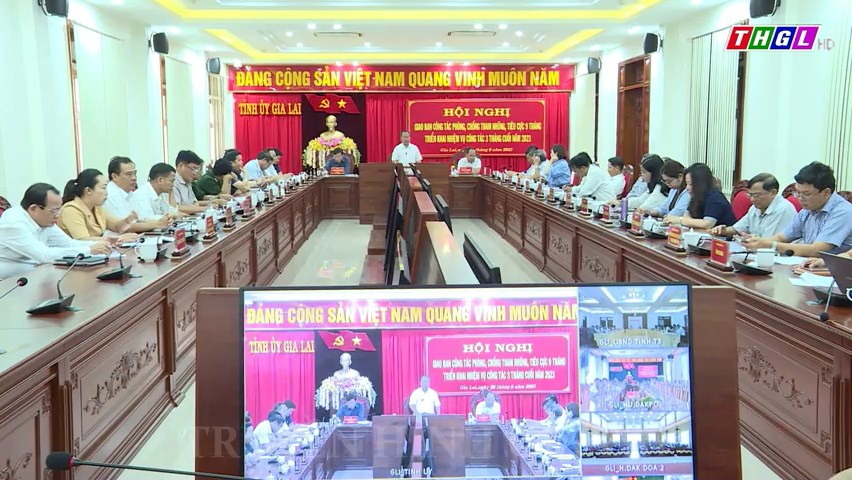 Sáng nay (29/9), Ban Thường vụ Tỉnh ủy Gia Lai tổ chức Hội nghị Giao ban công tác phòng, chống tham nhũng, tiêu cực 9 tháng, triển khai nhiệm vụ công tác 3 tháng cuối năm 2023. Các đồng chí: Châu Ngọc Tuấn – Phó Bí thư Thường trực Tỉnh ủy, Trưởng Đoàn đại biểu Quốc hội tỉnh, Phó Trưởng Ban Chỉ đạo phòng, chống tham nhũng, tiêu cực tỉnh; Trương Hải Long – Phó Bí thư Tỉnh ủy, Chủ tịch UBND tỉnh; Rah Lan Chung – Phó Bí thư Tỉnh ủy đồng chủ trì Hội nghị ở điểm cầu chính tại Tỉnh ủy. Tham dự Hội nghị tại điểm cầu chính có các đồng chí trong Ban Thường vụ Tỉnh ủy; thành viên Ban Chỉ đạo phòng, chống tham nhũng, tiêu cực tỉnh. Hội nghị được kết nối tới điểm cầu UBND tỉnh và điểm cầu cấp huyện, cấp xã trong toàn tỉnh với sự tham dự của gần 3.500 đại biểu.