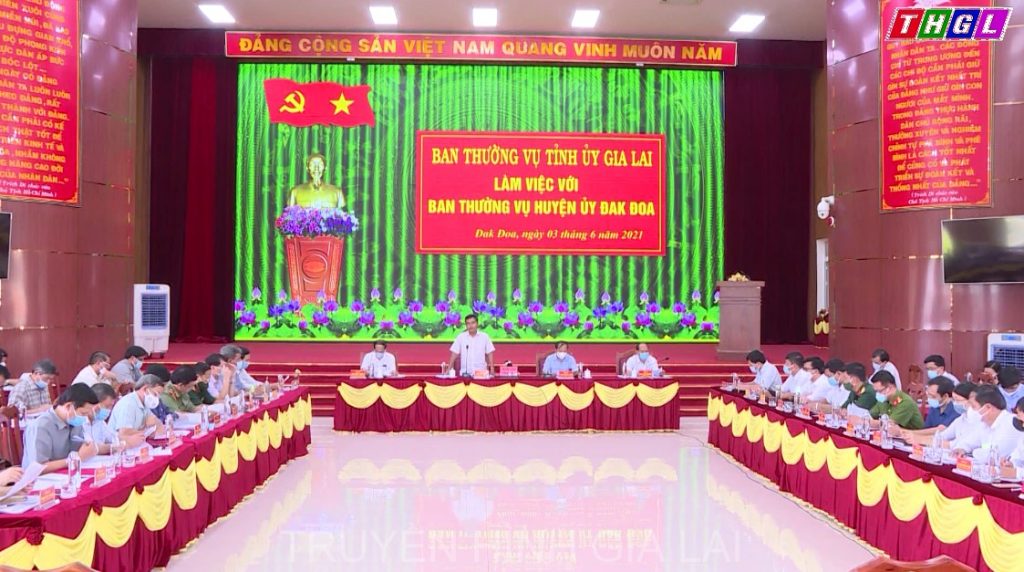 Sáng nay (3/6), Ban Thường vụ Tỉnh ủy đã làm việc với Ban Thường vụ Huyện ủy Đak Đoa về tình hình thực hiện nhiệm vụ chính trị của huyện trong năm 2020, 5 tháng đầu năm 2021; phương hướng, nhiệm vụ công tác trong thời gian đến và việc triển khai thực hiện các văn bản chỉ đạo của Thường trực Tỉnh ủy và Ban Thường vụ Tỉnh ủy đối với huyện Đak Đoa. Chủ trì buổi làm việc có các đồng chí: Hồ Văn Niên – Ủy viên BCH TW Đảng, Bí thư Tỉnh ủy, Trưởng Đoàn đại biểu Quốc hội khóa XIV tỉnh; Châu Ngọc Tuấn – Phó Bí thư Thường trực Tỉnh ủy, Chủ tịch HĐND tỉnh; Võ Ngọc Thành – Phó Bí thư Tỉnh ủy, Chủ tịch UBND tỉnh; Rah Lan Chung – Phó Bí thư Tỉnh ủy, Trưởng Ban Nội chính Tỉnh ủy. Dự buổi làm việc có lãnh đạo các sở, ban, ngành của tỉnh.