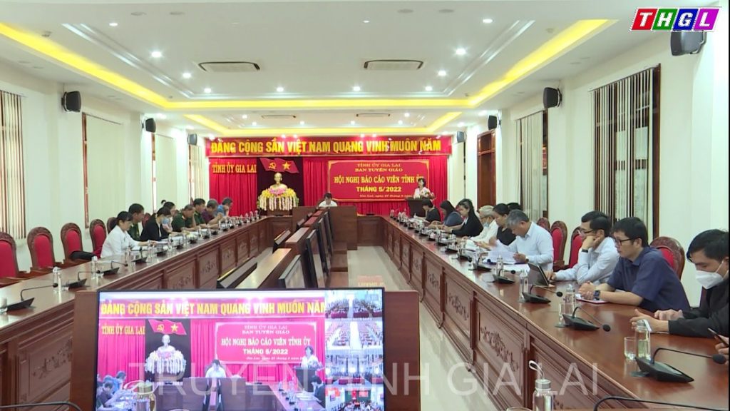Tại hội nghị, đồng chí Nguyễn Thị Thanh Lịch – Tỉnh ủy viên, Phó Chủ tịch UBND tỉnh đã thông tin về Kết quả công tác tổ chức Tuần lễ các sự kiện chào mừng kỷ niệm 90 năm Ngày thành lập tỉnh Gia Lai (24/5/1932-24/5/2022). Với sự chuẩn bị chu đáo, kỹ lưỡng về nhiều mặt, Tuần lễ các sự kiện chào mừng kỷ niệm 90 năm Ngày thành lập tỉnh Gia Lai đã thành công tốt đẹp trên nhiều phương diện, tạo sức lan tỏa và để lại nhiều dấu ấn đối với người dân, du khách trong và ngoài nước, đồng thời mở ra cánh cửa phát triển mới cho Gia Lai trong quá trình hội nhập và phát triển. Phó Chủ tịch UBND tỉnh Nguyễn Thị Thanh Lịch cho rằng: Những kết quả đạt được trong chặng đường 90 năm đã mở ra một giai đoạn mới với nhiều khát vọng mới của Gia Lai. Do vậy mong muốn các cấp, ngành, đoàn thể, đơn vị, địa phương tiếp tục chuyển tải những thông điệp và khát vọng phát triển của tỉnh đến với các tầng lớp Nhân dân nhằm phát huy tổng hòa các nguồn lực để sớm biến khát vọng phát triển của tỉnh thành hiện thực, qua đó xây dựng tỉnh Gia Lai ngày càng phát triển, giàu mạnh, tương xứng với tiềm năng vốn có để đến dịp kỷ niệm 100 năm Ngày thành lập tỉnh Gia Lai sẽ đạt được nhiều thành tựu vượt bậc hơn nữa. Tại hội nghị, các đại biểu cũng đã nghe các BCV Tỉnh ủy, BCV Trung ương thông tin thời sự Nga – Ukraina.