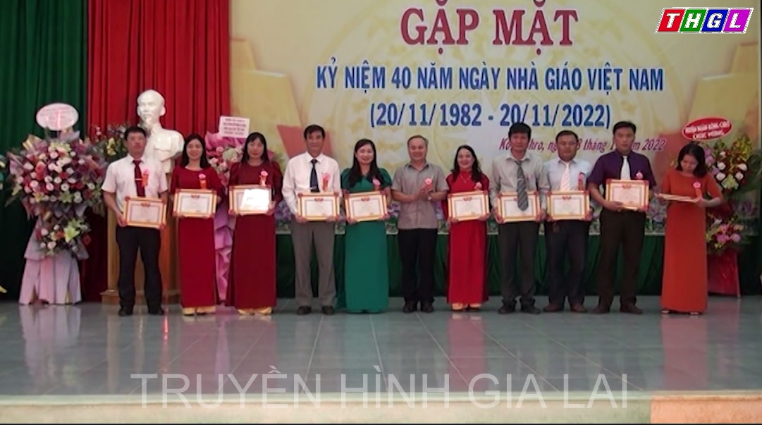 Huyện Kông Chro đã long trọng tổ chức buổi gặp mặt nhân kỷ niệm 40 năm Ngày Nhà giáo Việt Nam (20/11/1982-20/11/2022). Tham dự có 170 thầy, cô giáo tiêu biểu, hiệu trưởng, hiệu phó các trường học trên địa bàn huyện. Tại buổi gặp mặt, các đại biểu cùng ôn lại truyền thống tốt đẹp của Ngày Nhà giáo Việt Nam, chặng đường phát triển 40 năm ngành Giáo dục và Đào tạo, tôn vinh những đóng góp của các thế hệ thầy-cô giáo trong sự nghiệp “trồng người”. Nhân dịp này UBND huyện Kông Chro đã tặng giấy khen cho 10 tập thể và 45 cá nhân đã có thành tích tiêu biểu, suất sắc trong công tác giáo dục và đào tạo nhân kỷ niệm 40 năm Ngày Nhà giáo Việt Nam .