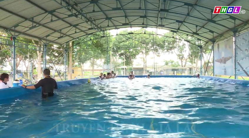 Thầy giáo Nguyễn Dương Huy – Giáo viên thể dục, Trường Tiểu học Nghĩa Hưng, huyện Chư Păh nói: “Về mặt thuận lợi thì bể ngay tại trường nên mình cũng cố gắng để công suất của bể hoạt động tốt nhất. Bể này thì hoạt động từ lớp 3 trở lên thôi vì bể bạt nên có mức nước cố định, các em nhỏ sẽ khó theo. Nhà trường đang tổ chức các lớp theo khóa, khi nhận các em vào chưa biết bơi thì khi tốt nghiệp bắt buộc các em phải biết bơi. Từ năm 2017 đến giờ thì bể hoạt động chưa nghỉ thời điểm nào chỉ trừ dịch thôi, 2 năm dịch phải đóng bể; còn lại đa số là dạy hết tất cả thời gian có thể dạy được”