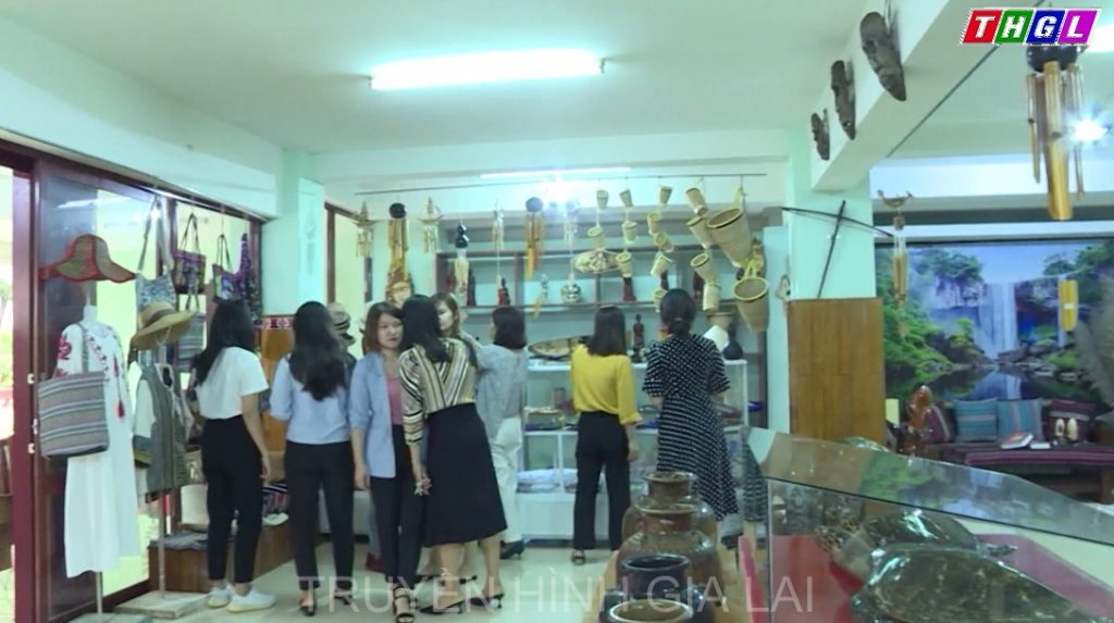 Bà Y Phương- Thạc sỹ Văn hóa, Trưởng phòng dịch vụ Bảo tàng tỉnh Gia Lai cho biết:  “Phòng trưng bày giới thiệu sản phẩm văn hóa”  chủ yếu là phục vụ khách du lịch, mình làm những hàng lưu niệm bằng tất cả những hiện vật tiêu biểu của bảo tàng. Điểm nhấn của phòng trưng bày này đặc biệt đó là những văn hóa truyền thống của đồng bào Jrai và Bahnar. Trong đó thổ cẩm là điểm nhấn. Ngoài những hàng lưu niệm thì các bạn sẽ được trải nghiệm mặc những trang phục truyền thống”.