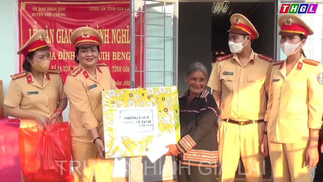 Một người là vợ liệt sỹ, một người là đối tượng bị tù đày trong kháng chiến chống Mỹ. Nhân dịp này, Phòng Cảnh sát giao thông, Hội Phụ nữ Công an tỉnh và chính quyền xã Ia Tôr đã tặng quà chúc mừng các gia đình có nhà mới; ngoài ra Phòng Cảnh sát giao thông Công an tỉnh cũng đã tặng 40 suất quà cho các gia đình khó khăn của làng Ó – Kly và làng Hle Ngol, xã Ia Tôr; tặng 50 mũ bảo hiểm xe máy cho thanh niên của 02 làng và kết hợp lồng ghép tuyên truyền An toàn giao thông đường bộ bằng xe cổ động.