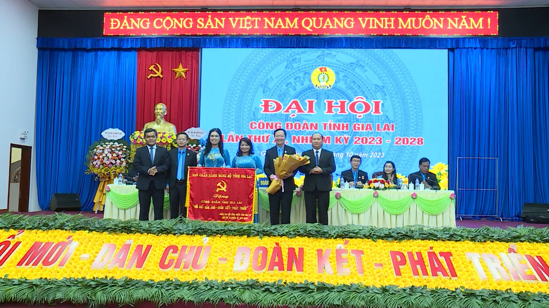 Ghi nhận và biểu dương những thành tích xuất sắc Công đoàn tỉnh Gia Lai đạt được, tại Đại hội, thay mặt BCH Đảng bộ tỉnh Gia Lai, đồng chí Hồ Văn Niên – Uỷ viên BCH TƯ Đảng, Bí thư Tỉnh uỷ, Chủ tịch HĐND tỉnh đã trao tặng Công đoàn tỉnh Gia Lai bức trướng với nội dung “Công đoàn tỉnh Gia Lai Đổi mới – Dân chủ – Đoàn kết – Phát triển”.