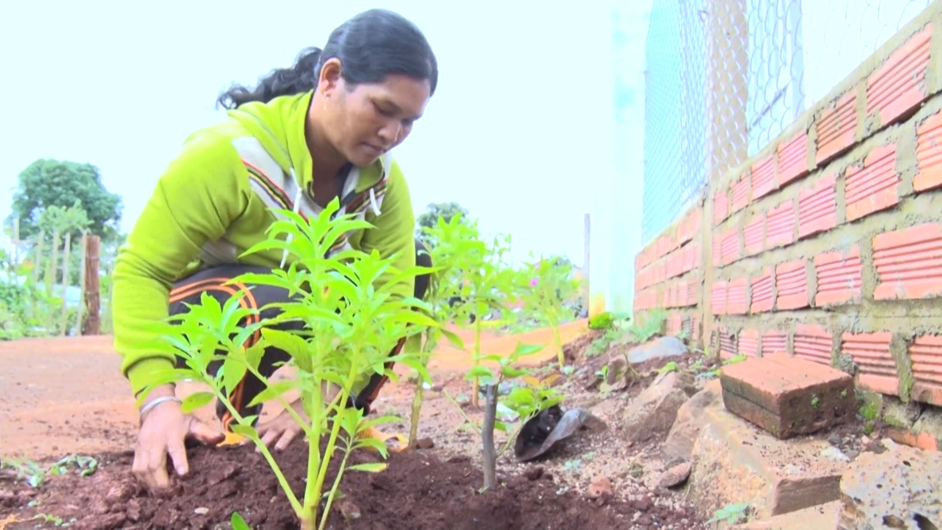Chị Rơ Châm Bi – Làng Nẽh Xo, xã Ia Tôr, huyện Chư Prông chia sẻ “Thấy chỗ nào có hoa giấy thì mình cắt về mình trồng, mình ươm. Khi nào mùa mưa tới, giống lên mầm, lá thì chị em phụ nữ trồng để đẹp vườn hoa và đẹp đường làng ngõ xóm.”