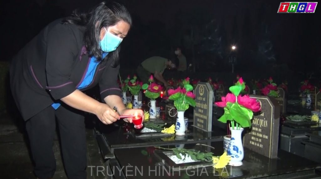 Tại buổi lễ, trước anh linh các Anh hùng Liệt sĩ, thay mặt tuổi trẻ Gia Lai chị Hà Thị Giang Thảo, Bí thư Tỉnh đoàn đã bày tỏ lòng biết ơn vô hạn, ghi nhớ công lao to lớn của các thế hệ cha anh đã hy sinh vì sự nghiệp cách mạng của Đảng, vì sự nghiệp giải phóng dân tộc. Các anh mãi mãi là tấm gương tiêu biểu cho lòng yêu nước, ý chí quật cường, cống hiến, hy sinh cho lý tưởng độc lập dân tộc và chủ nghĩa xã hội. Sự hy sinh anh dũng của các anh hùng liệt sĩ sẽ còn mãi với thời gian, với Tổ quốc. Tinh thần kiên trung và anh dũng của các anh hùng liệt sĩ là tấm gương sáng, soi rọi cho lớp lớp thế hệ hôm nay. Bằng tất cả sự biết ơn, trân trọng, thế hệ trẻ hôm nay sẽ luôn khắc ghi những công lao to lớn của các Anh hùng Liệt sĩ . Tuổi trẻ Gia Lai nguyện hứa ra sức phấn đấu kiên định đi theo con đường mà Đảng, Bác Hồ và nhân dân ta đã lựa chọn, quyết tâm bảo vệ toàn vẹn lãnh thổ, biên giới thiêng liêng của Tổ quốc, đóng góp tích cực vào việc phát triển kinh tế xã hội. Trong không khí trang nghiêm của buổi lễ, các đại biểu, cán bộ, đoàn viên, thanh niên đã kính cẩn dâng hoa, dâng hương và thắp nến tri ân cho hơn 3.600 ngôi mộ liệt sỹ để tỏ lòng thành kính biết ơn, trân trọng sự hy sinh cao cả của các thế hệ cha anh; trân quý giá trị của độc lập, tự do, quyết tâm giữ vững và phát huy tốt hơn nữa truyền thống quý báu, giá trị cao quý mà thế hệ cha anh đi trước đã xây dựng./.