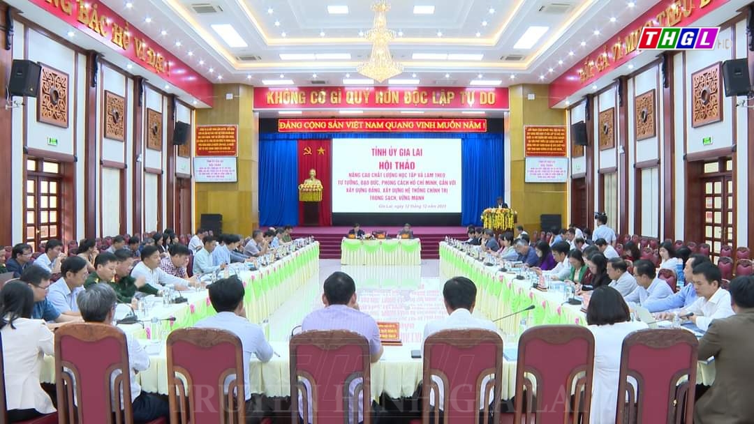 Tiếp tục quán triệt, tổ chức thực hiện nghiêm Kết luận số 01 của Bộ Chính trị về tiếp tục thực hiện Chỉ thị số 05 của Bộ Chính trị về đẩy mạnh học tập và làm theo tư tưởng, đạo đức, phong cách Hồ Chí Minh và Kết luận số 21 của Ban Chấp hành Trung ương Đảng khóa 13 liên quan đến xây dựng Đảng và hệ thống chính trị; đó là ý kiến chỉ đạo của đồng chí Hồ Văn Niên – Ủy viên BCH Trung ương Đảng, Bí thư Tỉnh ủy, Chủ tịch HĐND tỉnh tại Hội thảo “Nâng cao chất lượng học tập và làm theo tư tưởng, đạo đức, phong cách Hồ Chí Minh, gắn với xây dựng Đảng, xây dựng hệ thống chính trị trong sạch, vững mạnh”, được Ban Thường vụ Tỉnh ủy Gia Lai tổ chức trong sáng nay (12/12). Hội thảo dưới sự chủ trì của các đồng chí: Hồ Văn Niên – Ủy viên BCH Trung ương Đảng, Bí thư Tỉnh ủy, Chủ tịch HĐND tỉnh; Trương Hải Long – Phó Bí thư Tỉnh ủy, Chủ tịch UBND tỉnh; Huỳnh Thế Mạnh – Ủy viên BTV Tỉnh ủy, Trưởng Ban Tuyên giáo Tỉnh ủy. Tham dự Hội thảo có các đồng chí Ủy viên BCH Đảng bộ tỉnh; lãnh đạo các cơ quan chuyên trách tham mưu, giúp việc Tỉnh ủy; đại diện lãnh đạo: Các Ban cán sự Đảng, Đảng đoàn, Ban Thường vụ Tỉnh đoàn, Trường Chính trị tỉnh; đại diện Thường trực và Trưởng Ban Tuyên giáo (phòng chính trị) các huyện ủy, thị ủy, thành ủy, đảng ủy trực thuộc Tỉnh ủy.