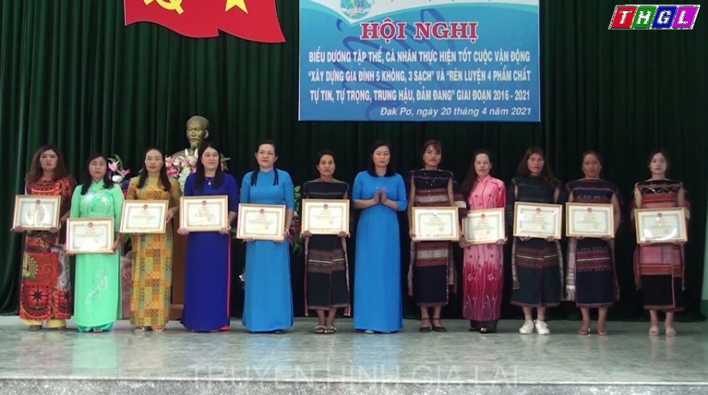 Dịp này, một số tập thể và cá nhân có thành tích xuất sắc trong thực hiện cuộc vận động (CVĐ) “ Xây dựng gia đình 5 không 3 sạch” và “Rèn luyện 4 phẩm chất tự tin, tự trọng, trung hậu, đảm đang” giai đoạn 2016-2021 đã được nhận Giấy khen của UBND huyện và Hội LHPN huyện Đăk Pơ.