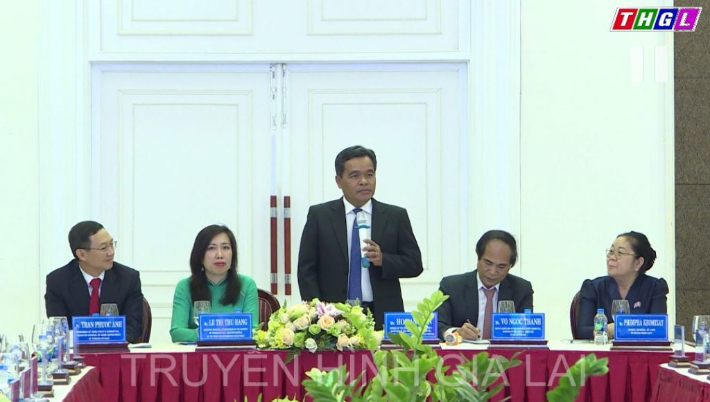 Chủ trì Hội nghị gồm: Bà Lê Thị Thu Hằng-Trợ lý Bộ trưởng Bộ Ngoại giao, Vụ trưởng Vụ Thông tin Báo chí Bộ Ngoại giao, Người phát ngôn Bộ Ngoại giao Việt Nam; ông Hồ Văn Niên-Ủy viên Ban Chấp hành Trung ương Đảng, Bí thư Tỉnh ủy, Chủ tịch Hội đồng nhân dân tỉnh Gia Lai; ông Võ Ngọc Thành-Phó Bí thư Tỉnh ủy, Chủ tịch UBND tỉnh Gia Lai; ông Trần Phước Anh-Thành ủy viên, Giám đốc Sở Ngoại vụ TP. Hồ Chí Minh; bà PhimPha Keomixay-Tổng Lãnh sự Lào tại TP. Hồ Chí Minh.