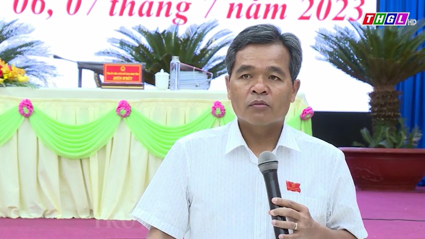 Đại biểu Nguyễn Thị Thuý Nga – Tổ đại biểu HĐND tỉnh ứng cử tại huyện Đak Đoa phát biểu: “Tại Nghị định 38 của Chính phủ đã phân cấp cho HĐND tỉnh ban hành các nội dung cần thiết và cũng đề nghị UBND tỉnh chỉ đạo các sở, ngành khẩn trương tham mưu để UBDN tỉnh đề xuất HĐND tỉnh ban hành các nghị quyết; cụ thể là các định mức quy định do HĐND tỉnh ban hành để các địa phương kịp thời triển khai các dự án của các chương trình mục tiêu quốc gia; bởi vì hiện nay đã là tháng 7 rồi mà vốn sự nghiệp từ năm 2022 chuyển qua và vốn năm 2023 nữa mà chỉ trong thời gian 4 tháng còn lại mà các địa phương triển khai giải ngân hết thì rất khó.”