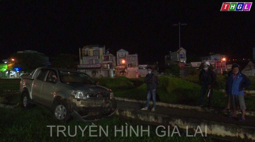 Theo đó, vào khoảng 21 giờ 15 phút, anh P.Q.T (SN 1990, trú tại tổ 5, phường Yên Thế, TP.Pleiku) điều khiển xe bán tải BKS 81C-004.72 chạy trên đường Trường Chinh theo hướng ngã Tư Lâm Nghiệp về ngã Ba Phù Đổng. Khi xe tới đoạn góc cua trước số nhà 09 Trường Chinh (tổ 5, phường Phù Đổng), anh T. tránh xe tắc xi đang chạy cùng chiều thì mất lái và bất ngờ lao thẳng qua bên luồng đường ngược chiều. Sau đó xe chạy thêm khoảng 30m thì lao vào khuôn viên bùng binh Phù Đổng rồi mới dừng lại. Hậu quả xe bán tải hư hỏng nặng phần đầu, làm thiệt hại một số cây cảnh trong khuôn viên bùng binh, may mắn không có ai bị thương.