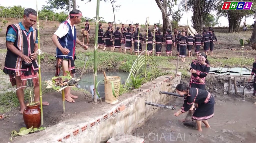 Làng Bông, xã Hà Bầu, huyện Đak Đoa, rất đông bà con tập trung về bến nước của làng để tiến hàng nghi lễ cúng Giọt nước. Lễ vật gồm một con gà nướng, gan gà sống, tiết gà sống, ghè rượu, lá chuối, bó lá Ngăl có trái. Khi lễ cúng Giọt nước bắt đầu, già làng cùng 2 người già uy tín của làng trải lá chuối, bôi gan gà lên tai ghè rượu và lá cây Ngăl có trái… Sau khi mọi công đoạn chuẩn bị hoàn tất, thay mặt dân làng, già làng, người chủ lễ đọc lời cúng mời gọi Yàng về chứng kiến phù hộ cho dân làng mạnh khỏe, mưa thuận gió hòa, mùa màng bội thu, vạn vật sinh sôi nảy nở, không có bệnh dịch xảy ra, nước chảy quanh năm, cây cối tươi tốt, thóc lúa đầy bồ…