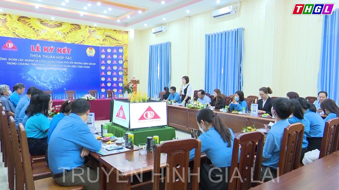 Chiều 6/4, Công đoàn các ngành của tỉnh và Liên đoàn Lao động thành phố Pleiku tổ chức ký kết thỏa thuận hợp tác với tập đoàn Trường Sinh Group thực hiện “Chương trình phúc lợi cho đoàn viên Công đoàn và người lao động”.