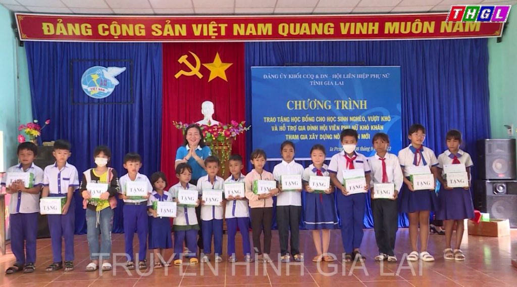 Năm học 2022-2023, các cấp Hội LHPN trên địa bàn tỉnh đồng loạt tổ chức chương trình ý nghĩa “Tiếp bước cho em đến trường”, tặng 4.454 suất quà gồm sách, vở, dụng cụ học tập, xe đạp, quần áo,… tổng trị giá gần 746 triệu đồng cho nhiều học sinh có hoàn cảnh khó khăn. Riêng Hội LHPN tỉnh trao 30 suất học bổng cho 30 học sinh nghèo tại huyện Phú Thiện với trị giá 15.000.000 đồng.