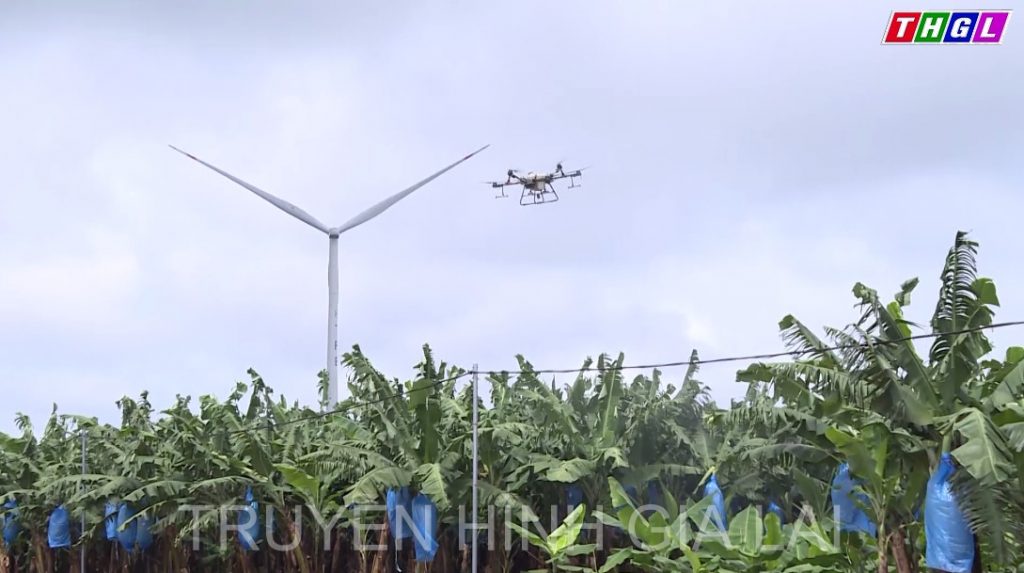 Lê Hoàng Linh, Giám đốc Dự án chuối công nghệ cao, Công ty CP Nông nghiệp công nghệ cao Hưng Sơn cho biết: “Công ty đã ứng dụng những công nghệ cao trong sản xuất như áp dụng hệ thống tưới nhỏ giọt theo công nghệ Israel, giúp tiết kiệm được nguồn nước tưới, nhân công, phun thuốc BVTV để kiểm soát dịch bệnh hại thì dùng đến máy bay không người lái. Về thu hoạch thì sử dụng hệ thống cáp treo rồng rọc để thu hoạch, giúp tiết kiệm thời gian và nhân công”.