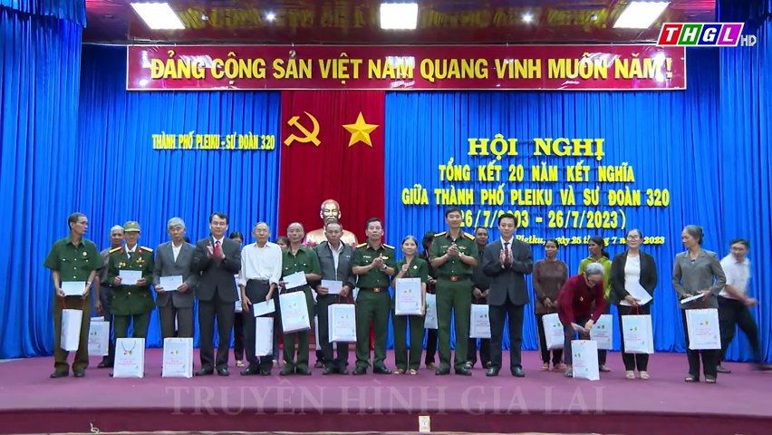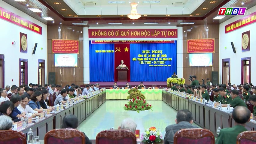 Chiều nay (25/7), tại Hội trường 19/5, TP. Pleiku, TP. Pleiku và Sư đoàn 320 thuộc Quân đoàn 3 đã phối hợp tổ chức tổng kết 20 năm hoạt động kết nghĩa giữa hai đơn vị. Dự Hội nghị có các đồng chí: Châu Ngọc Tuấn – Phó Bí thư Thường trực Tỉnh ủy, Trưởng Đoàn đại biểu Quốc hội tỉnh; Huỳnh Thế Mạnh – Ủy viên Ban Thường vụ Tỉnh ủy, Trưởng Ban Tuyên giáo Tỉnh ủy; Phạm Thị Tố Hải – Ủy viên Ban Thường vụ Tỉnh ủy, Trưởng Ban Dân vận Tỉnh ủy; Trịnh Duy Thuân – Ủy viên Ban Thường vụ Tỉnh ủy, Bí thư Thành ủy, Chủ tịch HĐND TP. Pleiku; Thiếu tướng Đặng Sỹ Lộc – Phó Tư lệnh Quân đoàn 3 và các đồng chí nguyên là lãnh đạo chủ chốt thành phố Pleiku. Đồng chủ trì Hội nghị có các đồng chí: Trịnh Duy Thuân – Ủy viên Ban Thường vụ Tỉnh ủy, Bí thư Thành ủy, Chủ tịch HĐND TP. Pleiku; Đỗ Việt Hưng – Phó Bí thư Thành ủy, Chủ tịch UBND TP. Pleiku; Đại tá Triệu Trường Giang – Bí thư Đảng ủy, Chính ủy Sư đoàn 320; Đại tá Lê Văn Cương – Sư đoàn trưởng Sư đoàn 320.