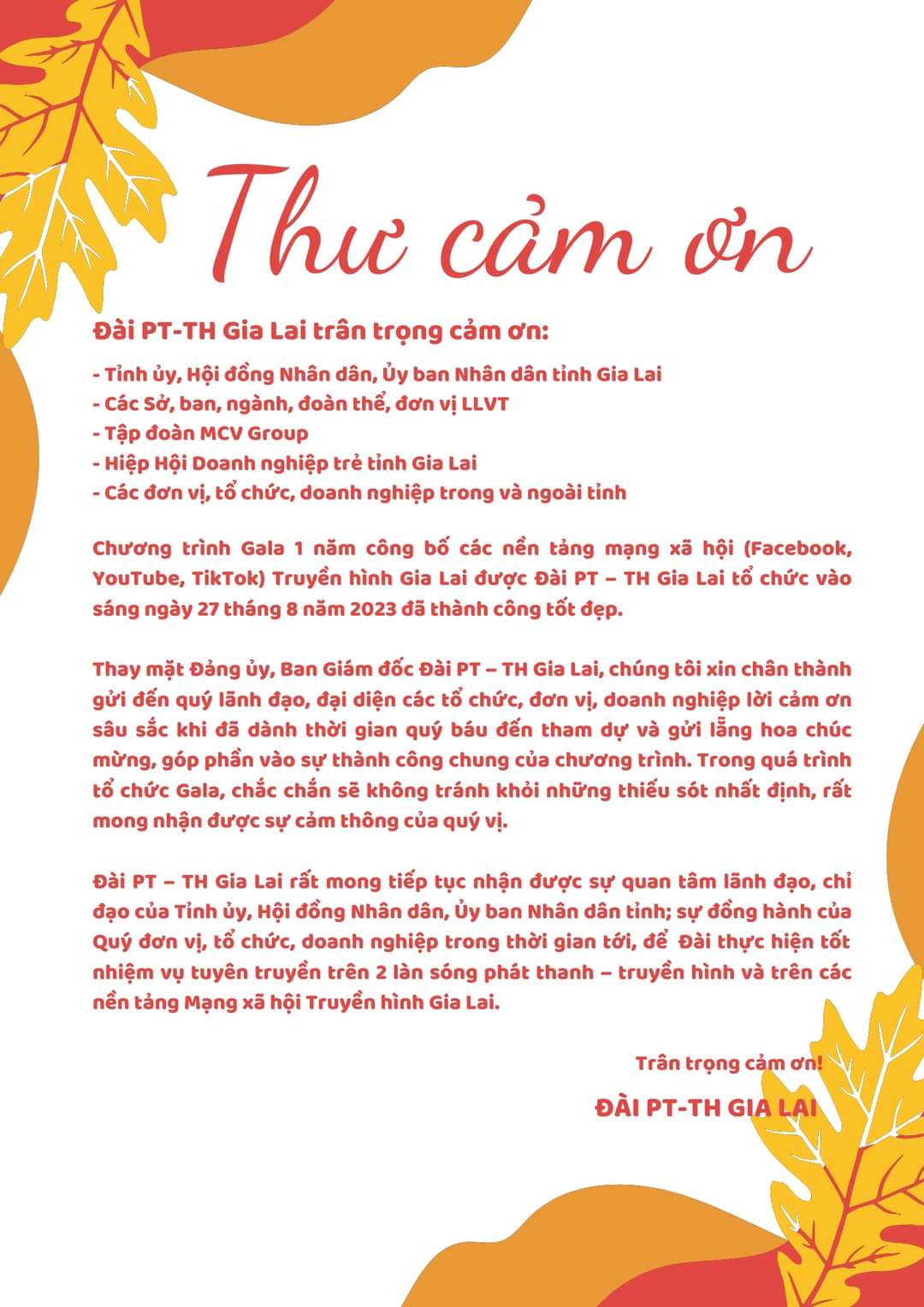 THƯ CẢM ƠN CỦA ĐÀI PT-TH GIA LAI