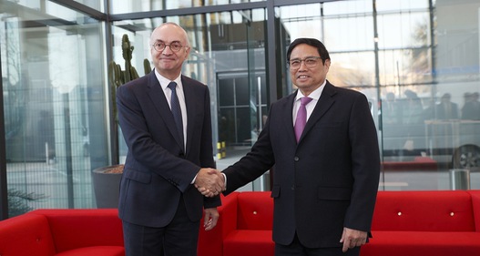 Chủ tịch kiêm Tổng Giám đốc điều hành Luc Van den hove đón Thủ tướng Phạm Minh Chính. Ảnh: Dương Giang-TTXVN